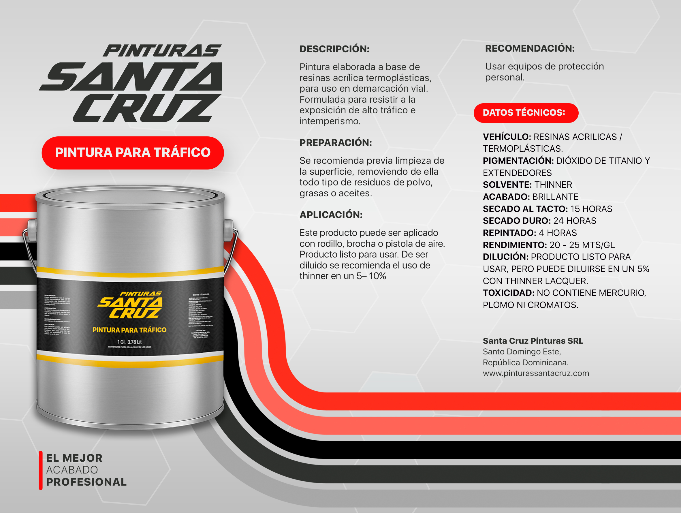 La línea de demarcación vial de Pinturas Santa Cruz ofrece recubrimientos de alto desempeño diseñados para soportar tráfico intenso, intemperie y radiación UV, garantizando alta visibilidad, adherencia y durabilidad en superficies de asfalto y concreto.